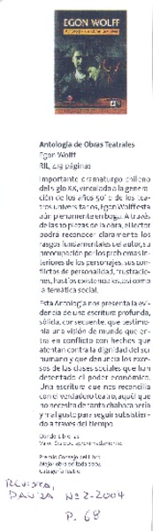 Autores chilenos - Wolff, Egon - Antología de obras teatrales