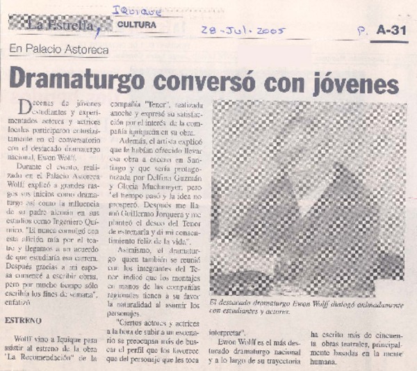 Egon Wolff dictará taller de dramaturgia [artículo].