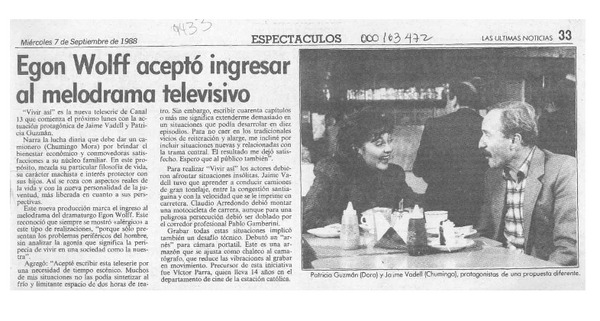 Egon Wolff aceptó ingresar al melodrama televisivo [artículo].