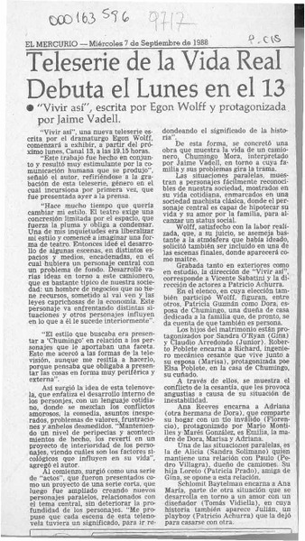 Wolff asegura que "Vivir así" será una teleserie muy diferente: [entrevista] [artículo] Pilar Entrala.