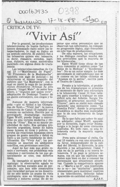 "Vivir así" [artículo] Orlando Walter Muñoz.