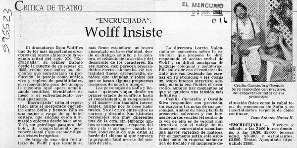 Teatro: de Egon Wolff a Calderón de la Barca [artículo] Yolanda Montecinos.