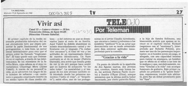 "Vivir así" nueva teleserie de Canal 13 [artículo].