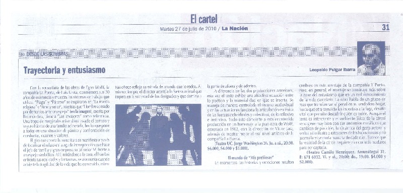 Trayectoria y entusiasmo [artículo] Lepoldo Pulgar Ibarra.