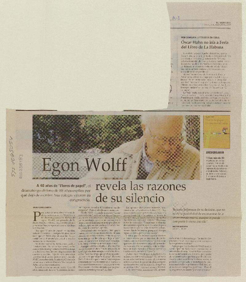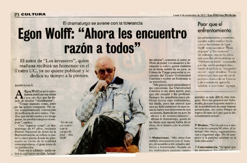 Egon Wolff: "Ahora les encuentro razón a todos" [artículo] Jazmín Lolas E.