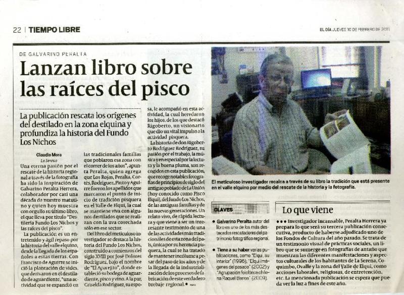 Lanzan libro sobre las raíces del pisco [artículo] Claudio Mora.