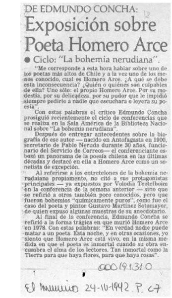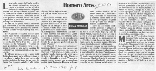 Homero Arce evoca a Neruda [artículo] Hugo Montes.