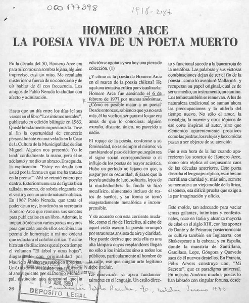 Homero Arce la poesía viva de un poeta muerto [artículo] Edmundo Concha.
