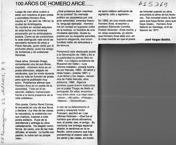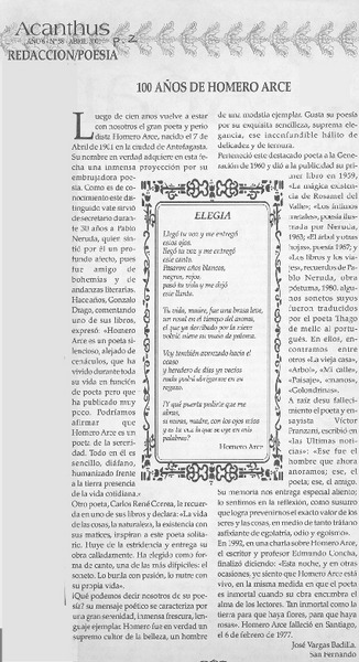100 años de Homero Arce [artículo] José Vargas Badilla