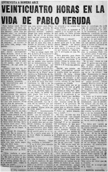 Veinticuatro horas en la vida de Pablo Neruda: [artículo] : [entrevista] Manuel Ravanal.