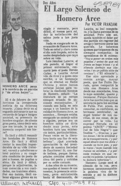 El largo silencio de Homero Arce [artículo] Víctor Franzani.