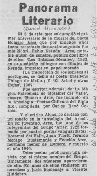 Homero Arce, secretario y poeta [artículo] Marino Muñoz Lagos
