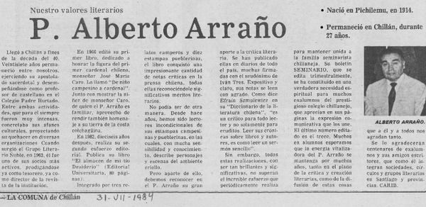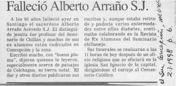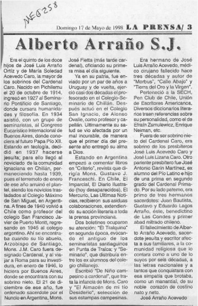 Alberto Arraño Acevedo S. J. [artículo] José Arraño Acevedo.