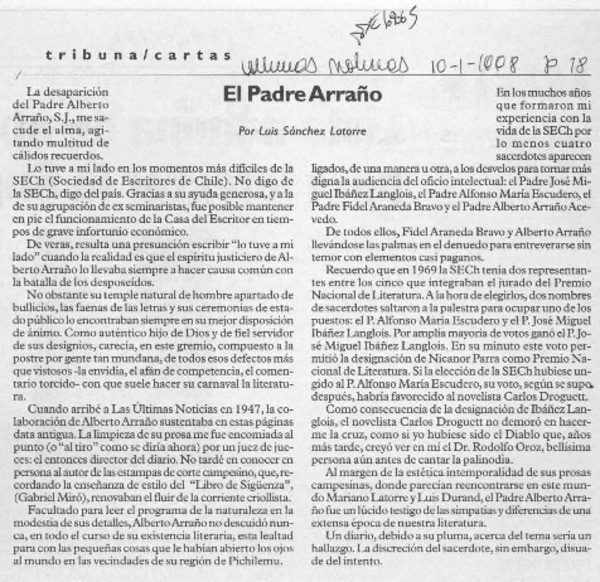 El Padre Arraño [artículo] Luis Sánchez Latorre.
