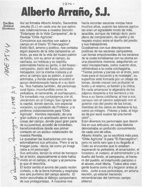 Alberto Arraño S.J. [artículo] Luis Merino Reyes.