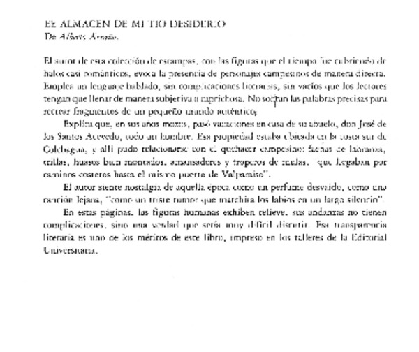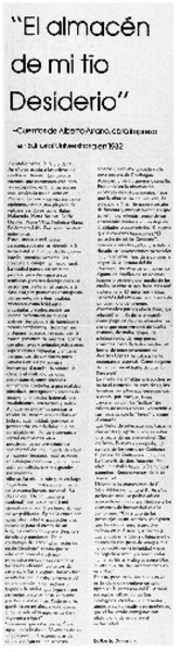 Acerca de "El almacén de mi tío Desiderio" [artículo] Hugo Montes.