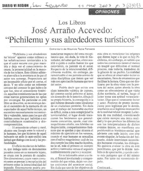 José Arraño Acevedo: "Pichilemu y sus alrededores turísticos". [artículo]