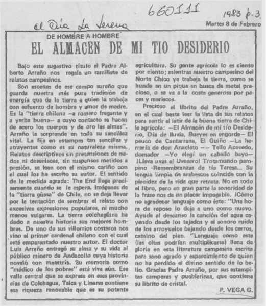 El almacén de mi tío Desiderio [artículo] P. Vega G.