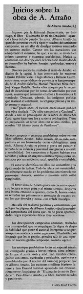 Juicios sobre la obra de A. Arraño [artículo] Carlos René Correa.