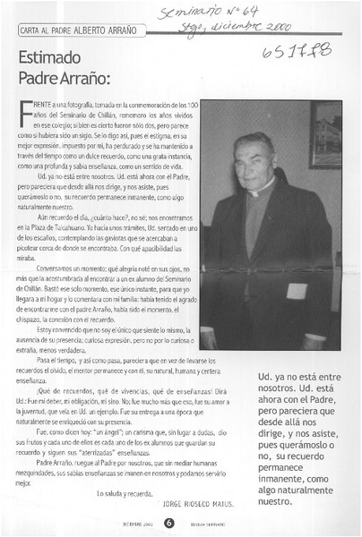 Estimado Padre Arraño [artículo] Jorge Rioseco Matus