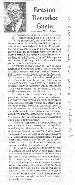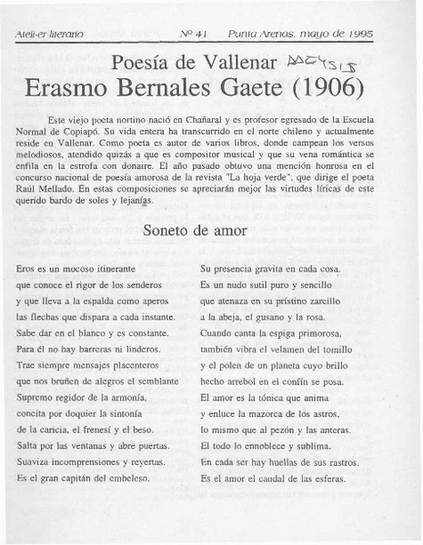 Algo sobre Erasmo Bernales Gaete [artículo] Benigno Avalos Ansieta.