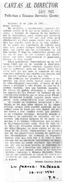 Cartas al director [artículo] Nelson Gustavo Durán.