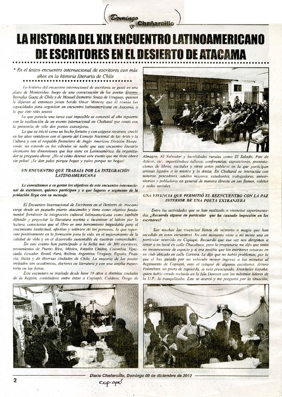La historia del XIX encuentro latinoamericano de escritores en el desierto de Atacama. [artículo]