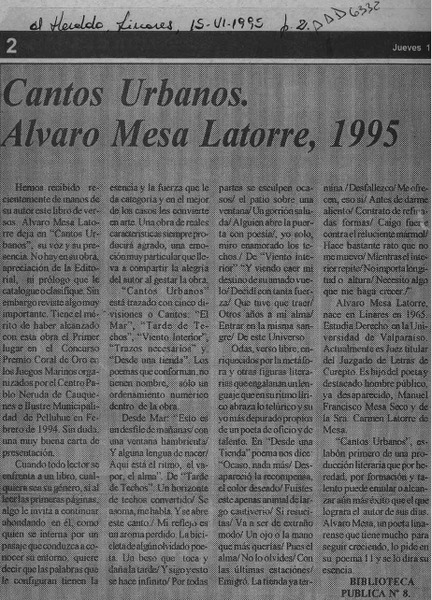 Cantos urbanos, Alvaro Mesa Latorre, 1995 [artículo].