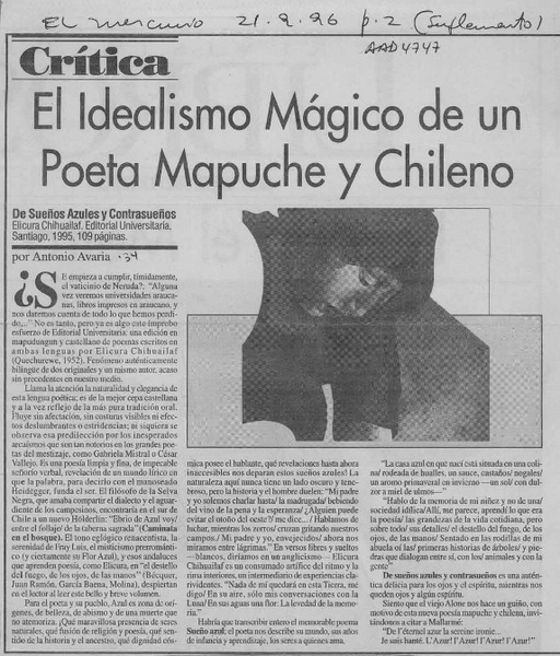El idealismo mágico de un poeta mapuche y chileno [artículo] Antonio Avaria.