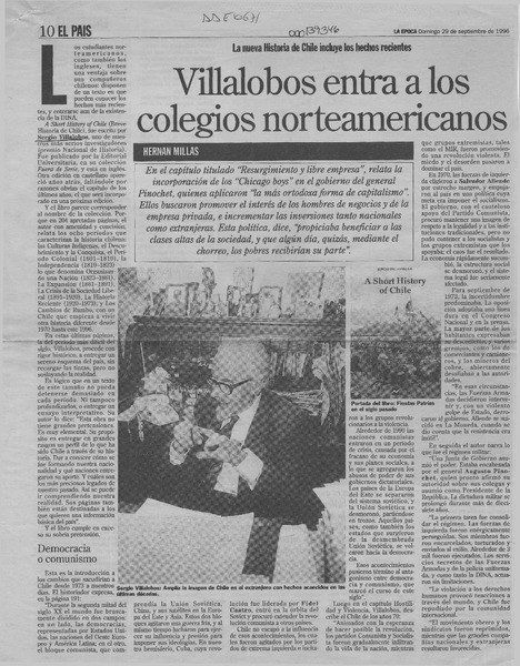 Villalobos entra a los colegios norteamericanos [artículo] Hernán Millas.