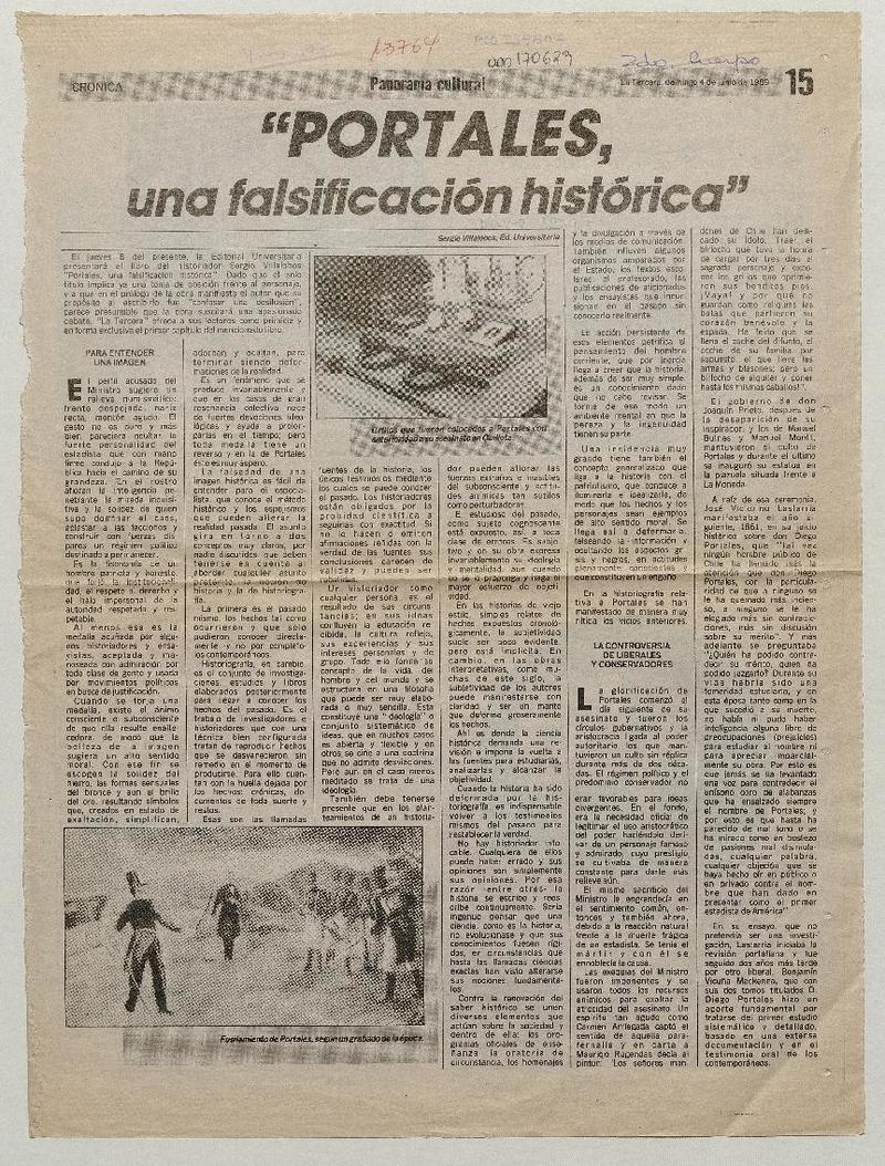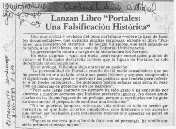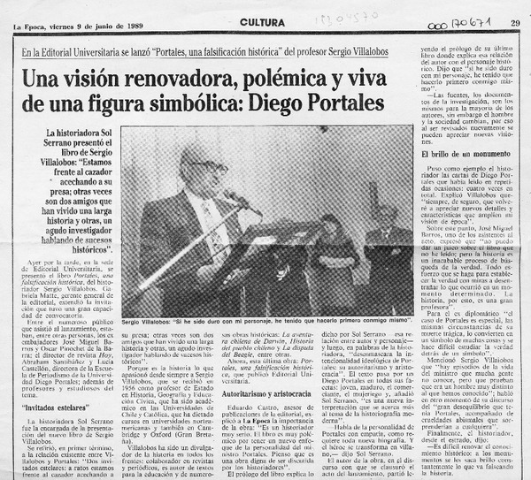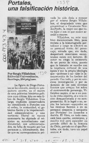 "Portales, una falsificación histórica" [artículo] Sergio Villalobos.