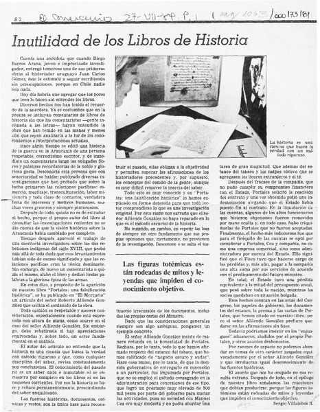 Inutilidad de los libros de historia [artículo] Sergio Villalobos R.