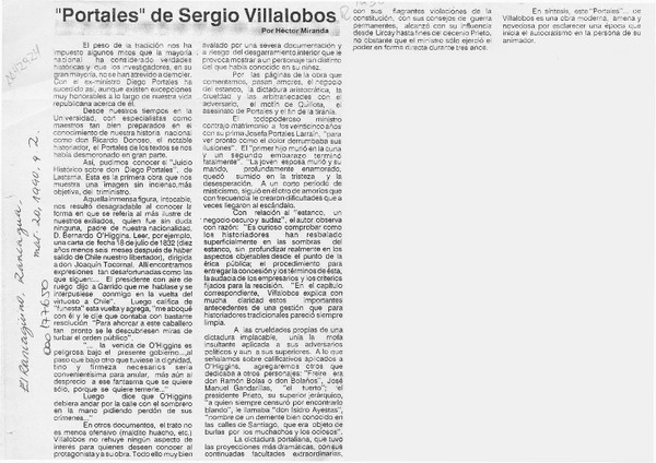 "Portales" de Sergio Villalobos [artículo] Héctor Miranda.