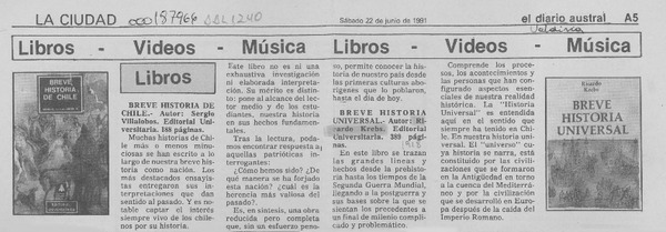BREVE HISTORIA DE CHILE - VILLALOBOS R., SERGIO - Krebs, Ricardo - Breve historia universal