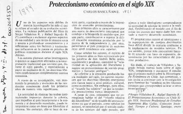 Proteccionismo económico en el siglo XIX [artículo] Carlos Bascuñan E.