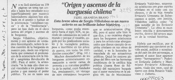 Origen y ascenso de la burguesía chilena [artículo] Cristián Gazmuri Riveros.