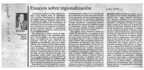 Ensayos sobre regionalización [artículo] Raimundo Barros Charlín.