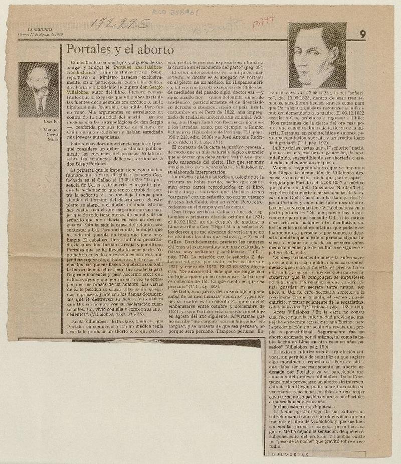 Portales y el aborto [artículo] Manuel Ravest Mora.