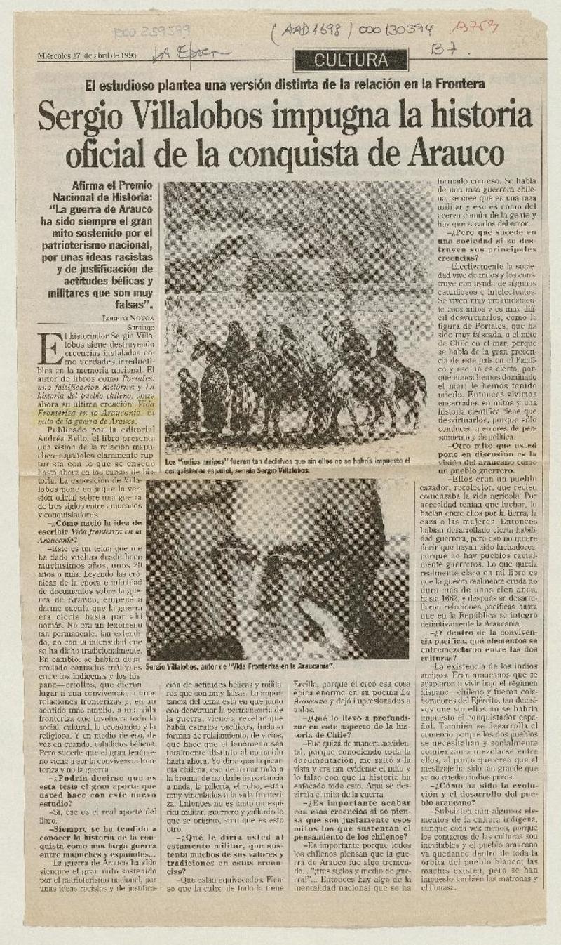 Sergio Villalobos impugna la historia oficial de la conquista de Arauco [artículo] Loreto Novoa.