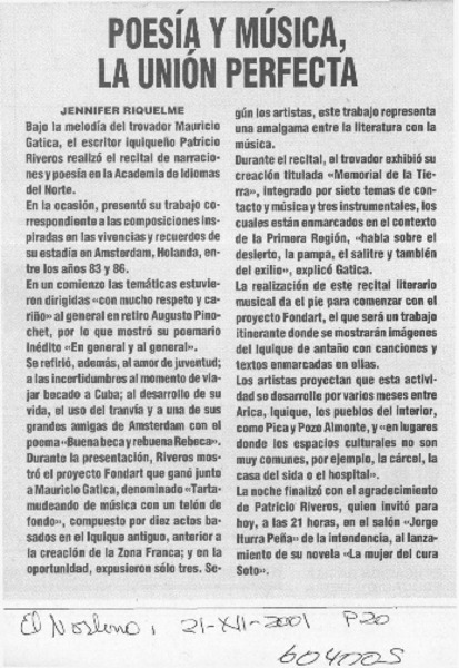 Poesía y música, la unión perfecta [artículo] Jennifer Riquelme