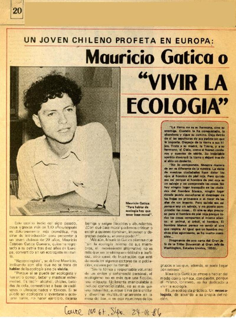 Mauricio Gatica o "Vivir la ecología" [artículo] JJF.
