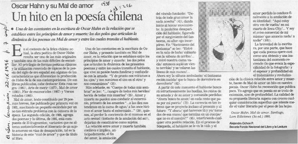 Autores chilenos - Hahn, Óscar - Mal de amor
