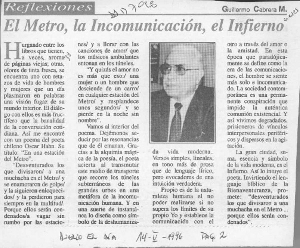 El metro, la incomunicación, el infierno [artículo] Guillermo Cabrera M.