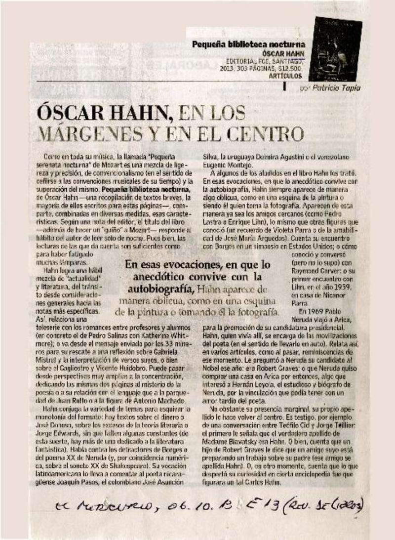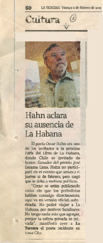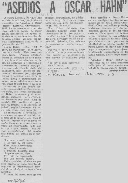 "Asedios a Oscar Hahn" [artículo] Matías Rafide.