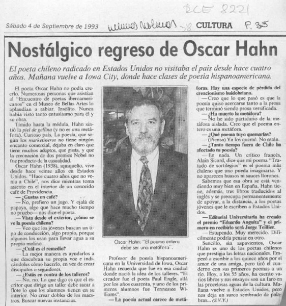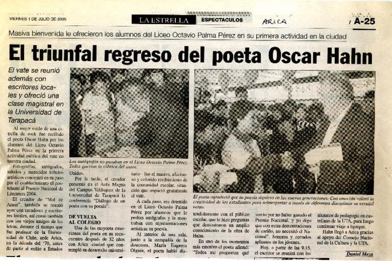 El triunfal regreso del poeta Oscar Hahn [artículo].