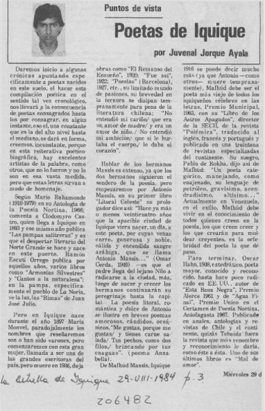 Poetas de Iquique [artículo] Juvenal Jorge Ayala.