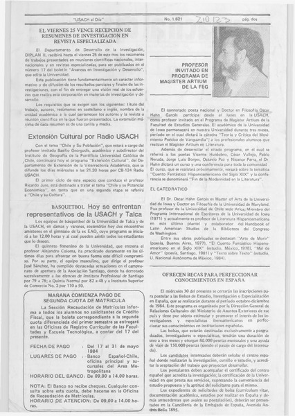 Profesor invitado en Programa de Magister Artium de la FEG". [artículo]