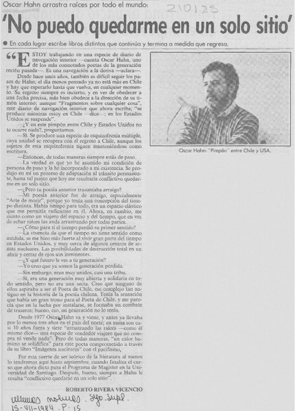 "No puedo quedarme en un solo sitio" [artículo] Roberto Rivera Vicencio.