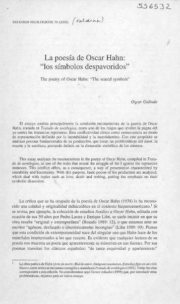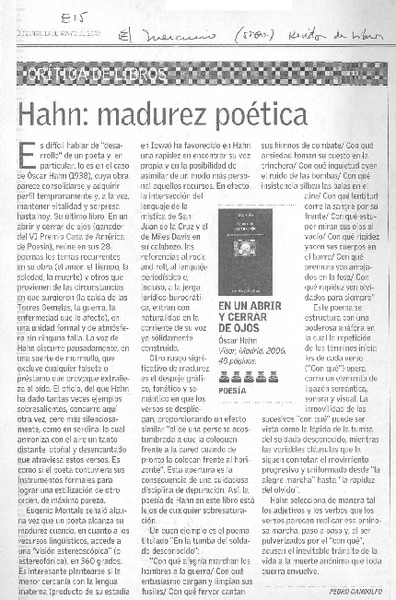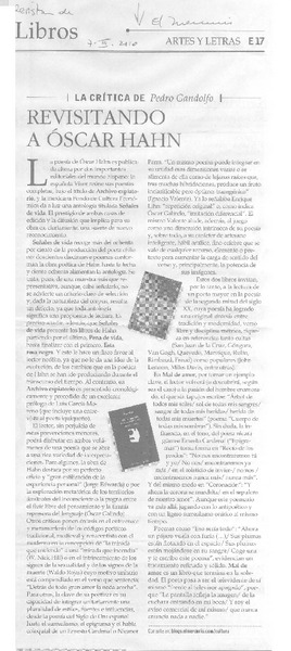 Revisitando a Óscar Hahn [artículo] Pedro Gandolfo.