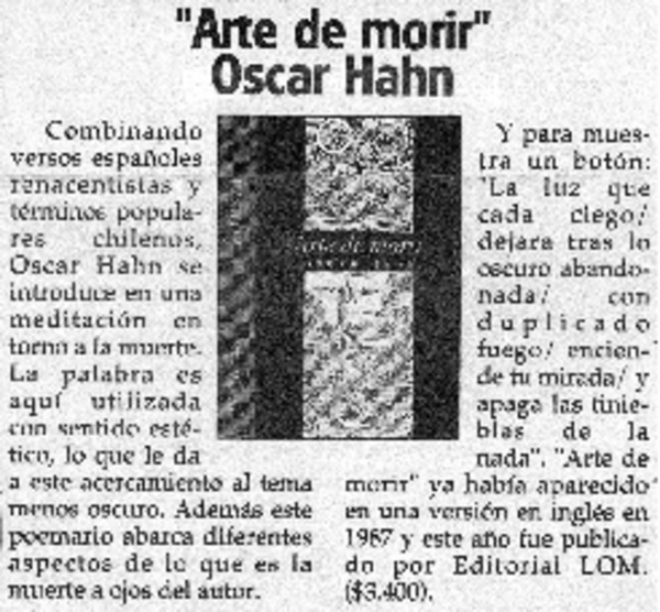 Autores chilenos - Hahn, Óscar - Arte de morir